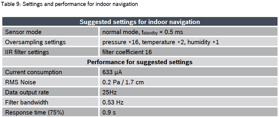 BME280 데이터시트를 보면 다양한 환경에 따른 추천 설정 정보를 제공해주고 있다.