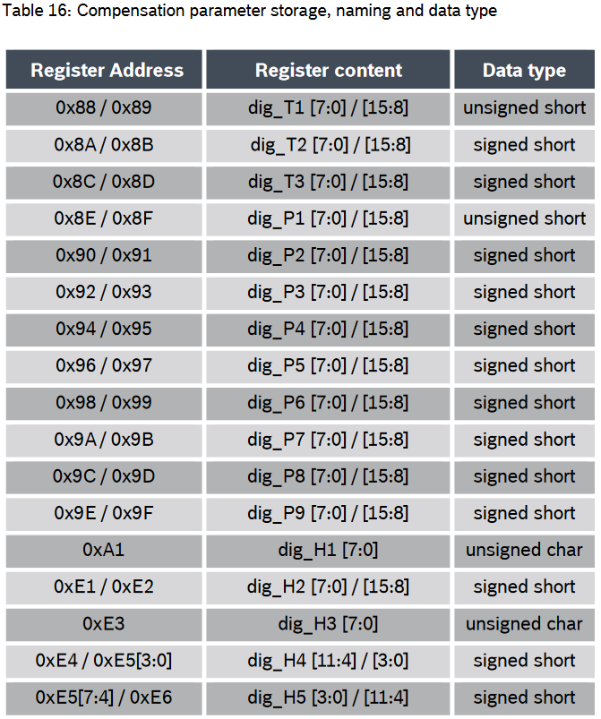 int16_t dig_T2, dig_T3, dig_P2, dig_P3, dig_P4, dig_P5, dig_P6, dig_P7, dig_P8, dig_P9, dig_H2;