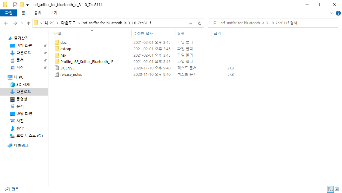 글 작성 기준으로 nrf_sniffer_for_bluetooth_le_3.1.0_7cc811f.zip을 선택하였다.