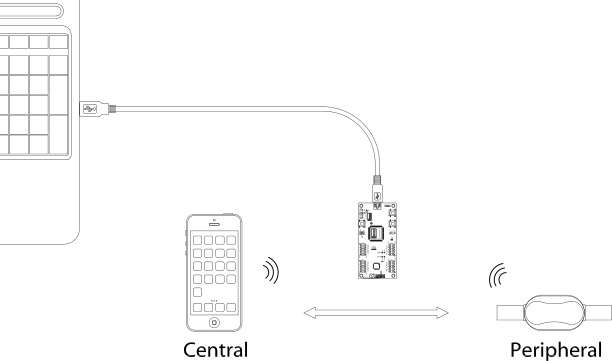 블루투스 패킷을 캡처하려면 컴퓨터와 nRF Sniffer가 연결된 상태에서 다음 사진과 같이 블루투스 장치를 배치한다.