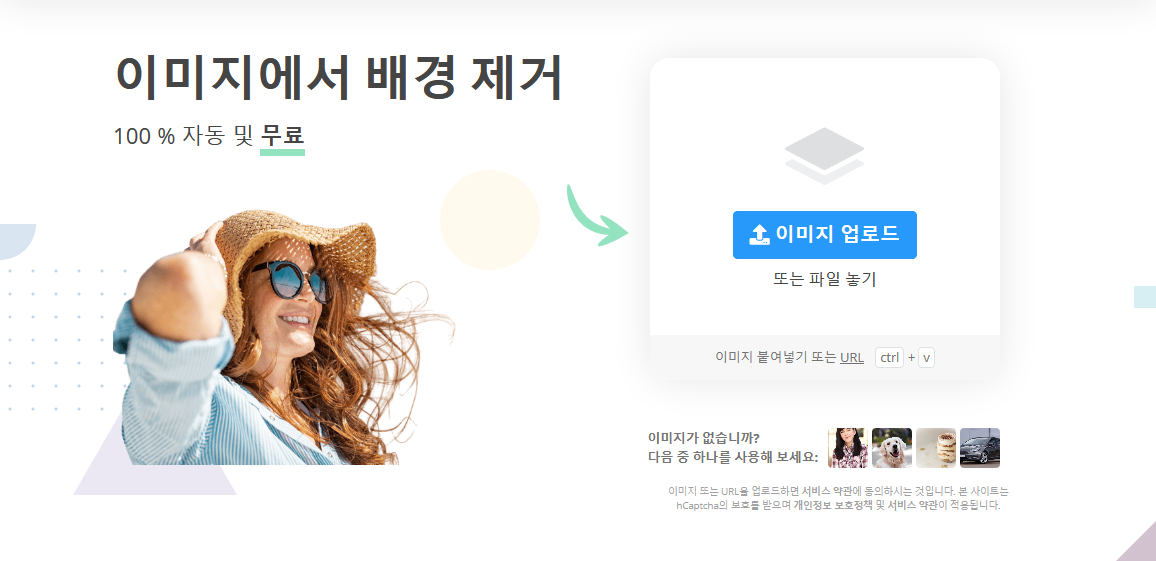 배경을 지울 이미지를 드래그하거나 파일을 업로드하면 자동으로 누끼를 따주는 사이트입니다.
