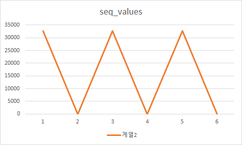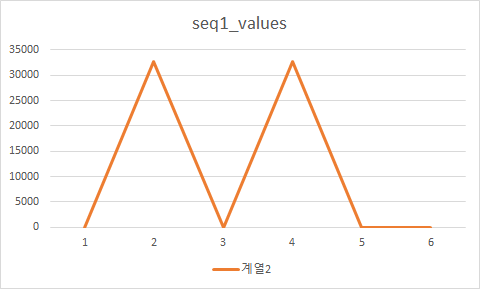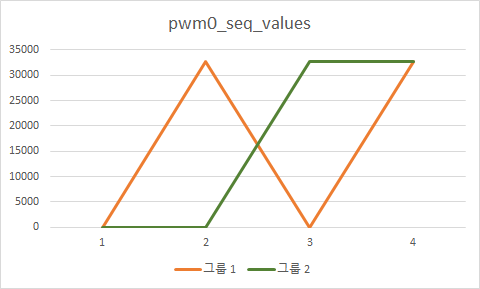 pwm2_seq1 시퀀스 값은 5000까지 100씩 증가하다가 다시 100씩 감소하는데 듀티 사이클 반복 횟수는 2번이다.